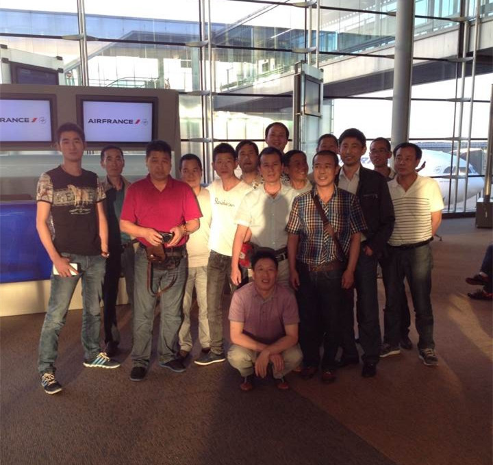 The first group staff to Venezuela took picture in France airport in June 4, 2014.