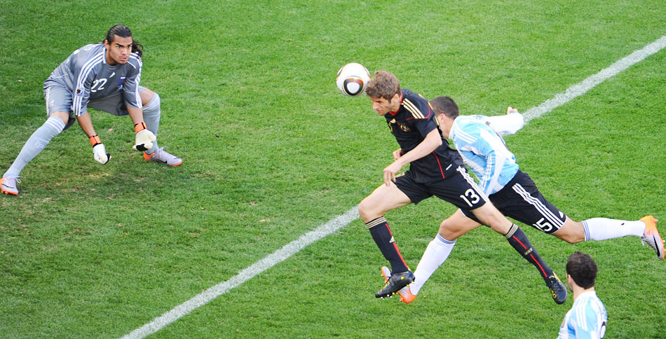 Beijing time on July 3rd 22, the nineteenth FIFA World Cup South Africa launched third 1/4 finals contention. Green Point stadium in Cape Town, the German team 4-0 swept the Argentina team became the third team into the semi-finals, three consecutive to the World Cup semi-final, the German team to create the two warring history most lopsided victory record, team Argentina has the world cup in the worst defeat in 36 years. After just 157 seconds, Muller took Schweinsteiger out of the free kick into the German team in the 200th World Cup finals goal; Keluoze plum to open two degrees of personal world cup tally to 14 grains, distance record holder Ronaldo only 1 particle gap; another A- Friedrich also made his first goal in the national team.
