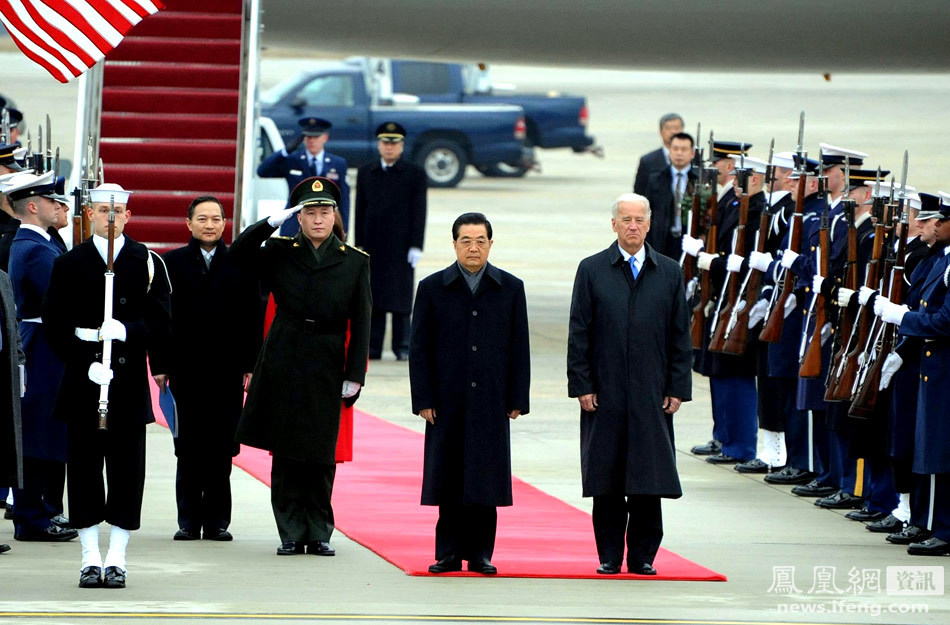 16 pm local time, Hu Jintao's special plane arrived at Andrews Air Force Base in washington. The United States vice president Biden at the airport greeted Hu jintao.