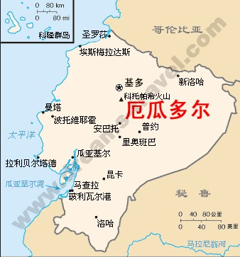 Ecuador in August 10, 1809 when the rule of independence from spain. The trans equatorial Ecuador frontier, plus in Spanish Ecuador means the equator, the country also has the nickname "the country", or because the bananas and known as the "Kingdom of banana". Located in the foothills of the pichincha Quito volcano, 2850 meters above the sea level, capital city in the world with second high (after Bolivia capital La Paz). As the union of South American nations members.