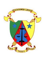 喀麥隆地圖和代表國家統一與平等的寶劍和天平。盾徽后面兩把交叉的金色束棒,象征權威與不可侵犯。盾面上兩顆星星分別表示原英屬南部、法屬東部喀麥隆。國徽端的綬帶上用法文和英文寫(xiě)著(zhù)“和平、勞動(dòng)、祖國”,下端的綬帶上寫(xiě)著(zhù)“喀麥隆共和國”。