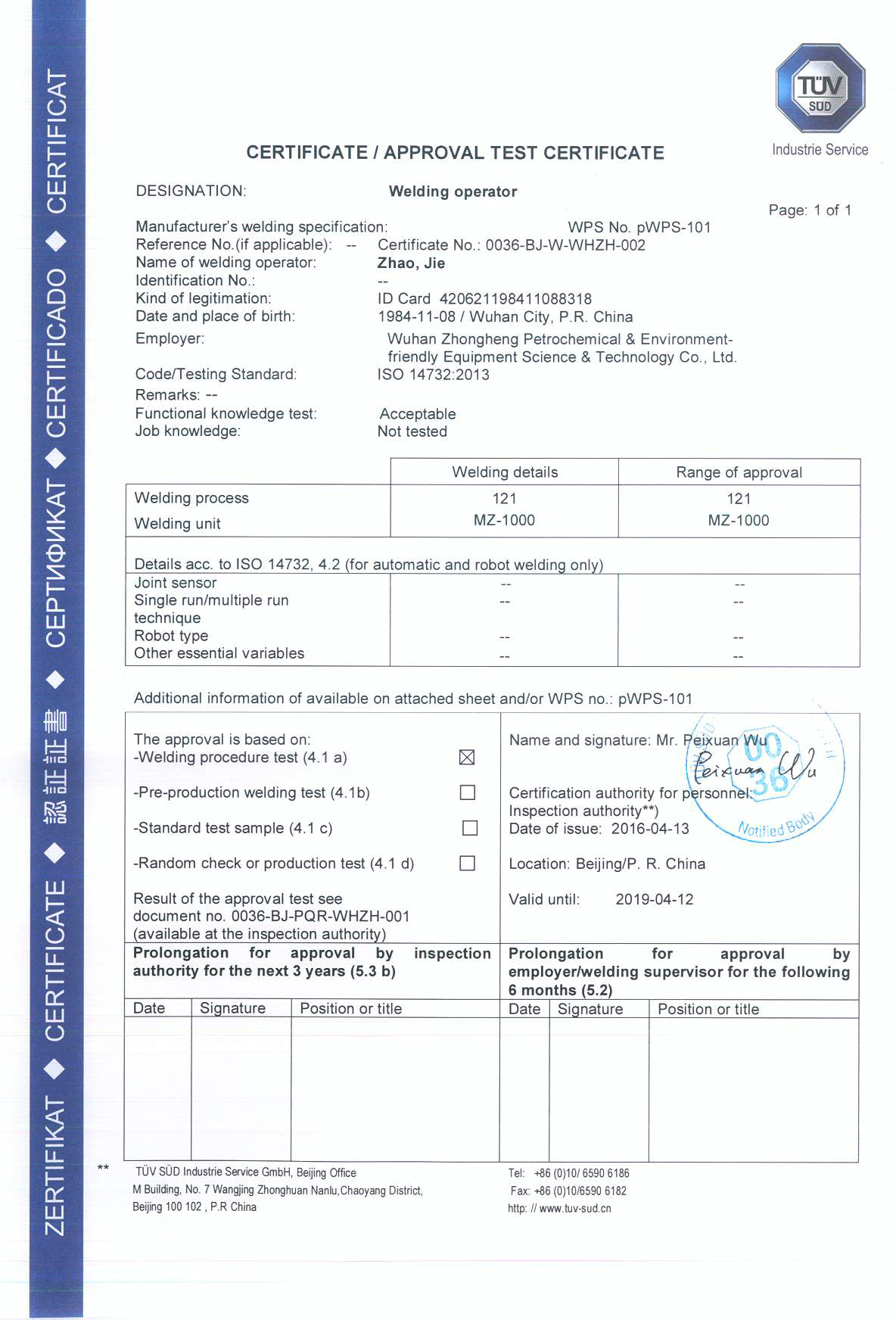 快訊 為了支持企業(yè)向全球發(fā)展、滿(mǎn)足海外用戶(hù)的需求,武漢眾恒環(huán)保節能工程有限公司在繼取得ASME美標焊接認證后,近日再次取得歐盟CE體系PED壓力容器認證!