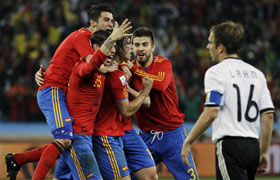 北京時(shí)間7月8日2時(shí)30分(南非當地時(shí)間7日20時(shí)30分),世界杯半決賽第2場(chǎng)在德班球場(chǎng)展開(kāi)角逐,西班牙1比0力克德國,成為歷史上第12支打進(jìn)決賽的球隊,也是1982年的西德之后首支殺進(jìn)世界杯決賽的衛冕歐洲冠軍。隊長(cháng)普約爾下半時(shí)攻入唯一進(jìn)球。北京時(shí)間12日凌晨,西班牙與荷蘭決出世界杯第8支冠軍隊,這將是兩隊首次在世界杯上碰面。