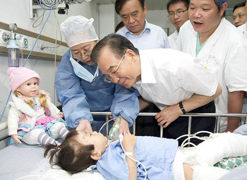 快訊 溫家寶總理在溫州看望“7·23”事故受傷者小女孩