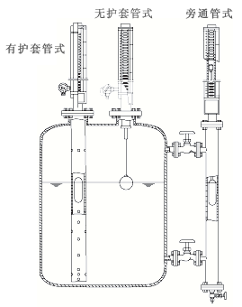 UQZ型浮球液位計主要由磁浮球、傳感器、變送器三部分組成,浮球液位計的工作原理采用304、PVC、PTFE等塑料高分子材料作連接導線(xiàn)盒和安裝固定件;對于腐蝕性很強的介質(zhì),采用聚四氟乙烯燒結在接觸介質(zhì)金屬保護管、浮球的表面,以確保液位儀表不被腐蝕。根據用戶(hù)要求預設磁敏元件,浮球隨液面上下運動(dòng)改變磁敏元件的預設狀態(tài)發(fā)出通斷信號,實(shí)現對液面的監控。當磁浮球隨液位變化、沿導管而上下浮動(dòng)時(shí)、浮球內的磁鋼吸合傳感器內相應位置上的干簧管,使傳感器的總電阻(或電壓)發(fā)生變化,再由變送器將變化后的電阻(或電壓)信號轉換成4-20mA的電流信號輸出,并通過(guò)數顯控制儀或DSB光柱數顯儀對液位進(jìn)行遠距離測量,并可在顯示儀上設定上、下限報警,實(shí)現對液位的位式遠程數字控制,亦可以由其它調節器構成液位恒值調節總電腦控制系統,實(shí)現對液位的PID連續遠程調節。 同時(shí),對于地下儲罐或槽在變送器頭部配有1.5級表頭,增加了被測液位的就地指示。